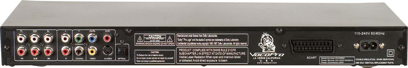 The DVX-668K Multi-Format disc player from VocoPro is packed with features and compatible with the most popular media formats. Play CD+G discs for Karaoke performances, listen to your favorite CDs and MP3s, view a slideshow of your digital photographs or watch movies on DVD or in DivX format.