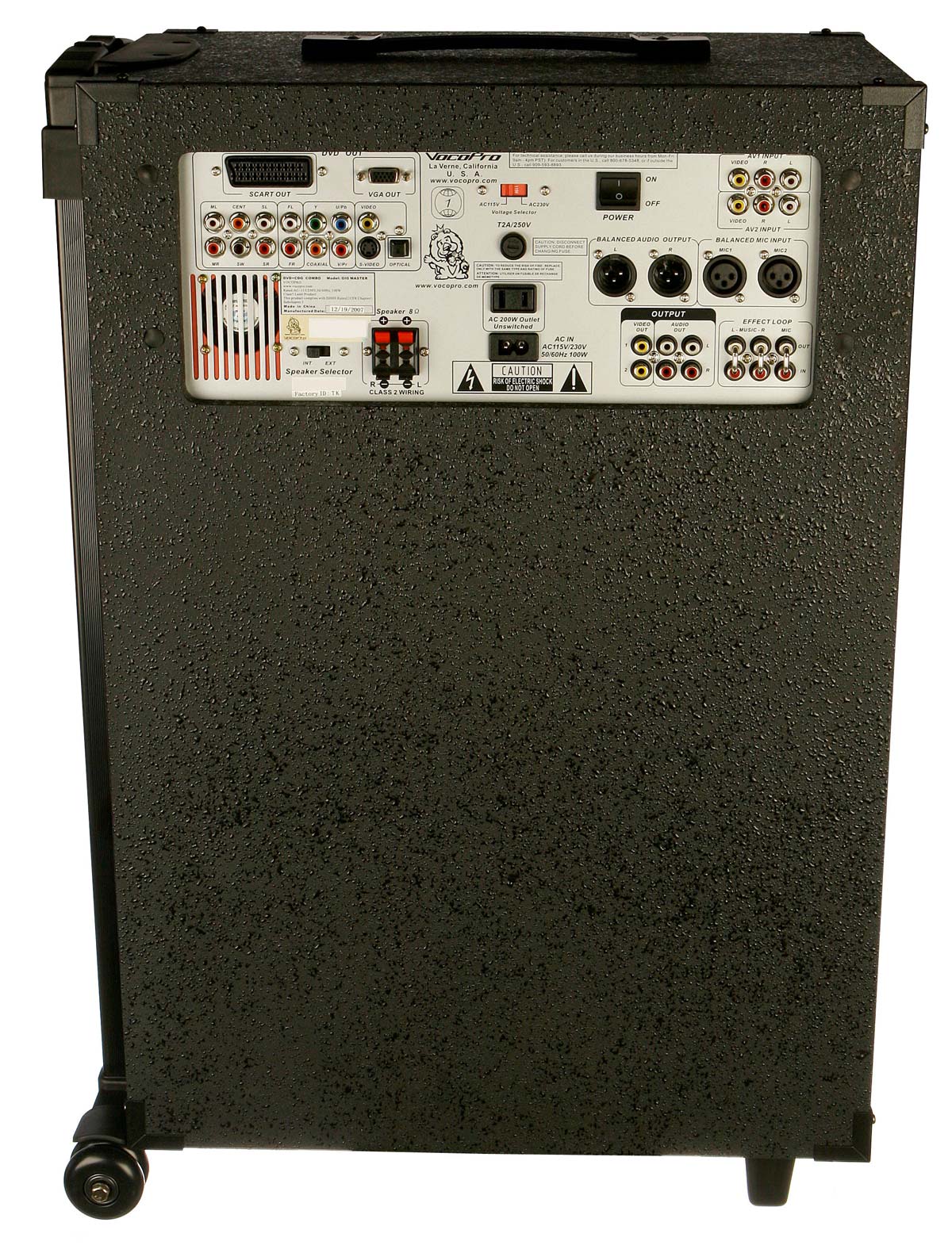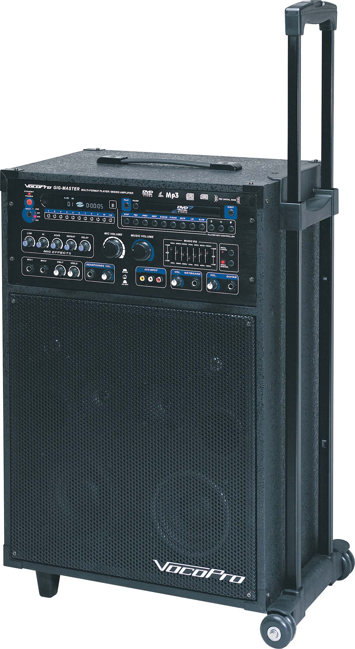 The GIG-MASTER is the World's First all-in-one design that combines a multi-format player, a digital vocal and instrument mixer with a 180 watt amplifier. VocoPro has enclosed them all into one sturdy 6-speaker road cabinet with casters and extendable handle for total mobility! Whether you are a Karaoke enthusiast, a performing musician or both, it offers unparalleled features and performance for everyone.