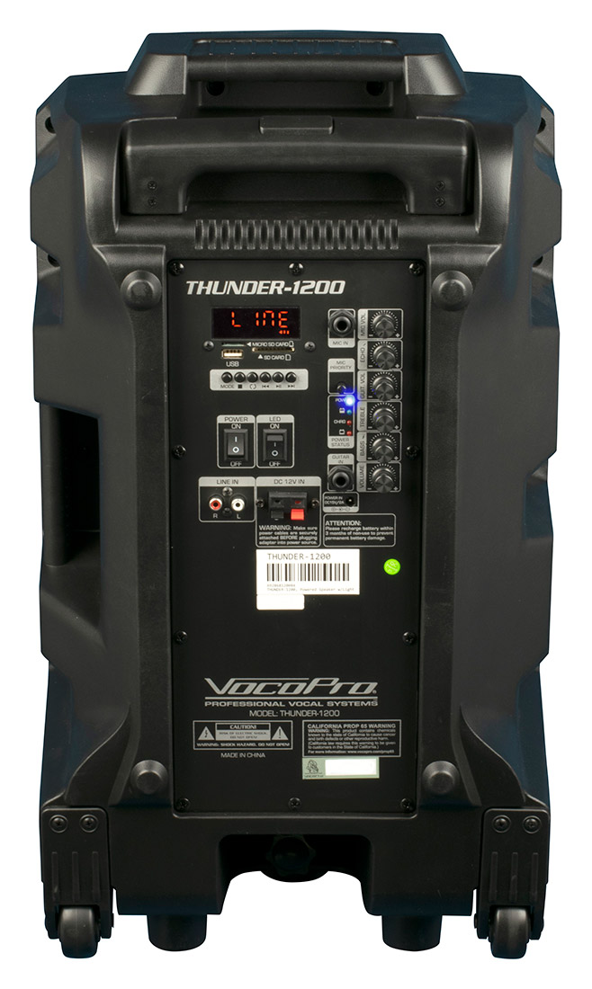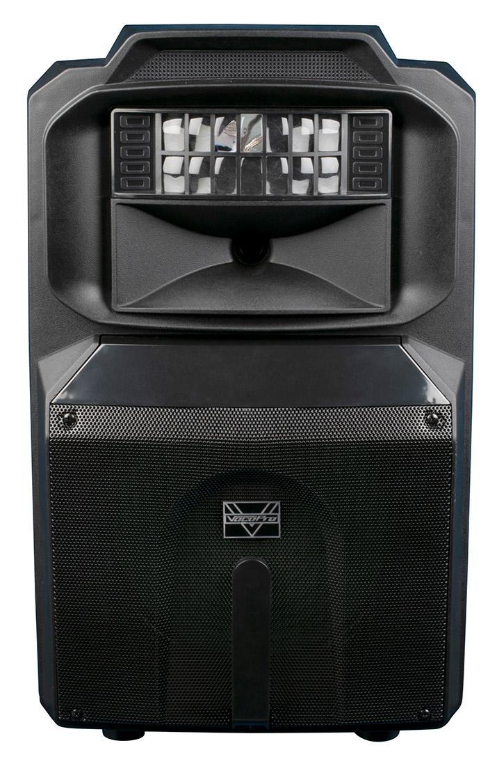 A TOTAL ENTERTAINMENT SOLUTION. The Vocopro Karaoke Thunder powered speaker series combines a powered speaker with a professional DJ light to bring vibrant light shows effortlessly to any small to medium sized venue. Feel the music when the 12 inch woofer pumps out 600 watts of peak power* The built-in LED derby flashes out professional light shows that dance to the sound of your music. All Karaoke-Thunder series models are battery powered and have both guitar and microphone inputs. Karaoke ready with the legendary sound VocoPro is known for. Link to one Karaoke-Thunder speaker wirelessly or connect a pair with RCA signal cable OR wireless speaker transmitter / receiver.