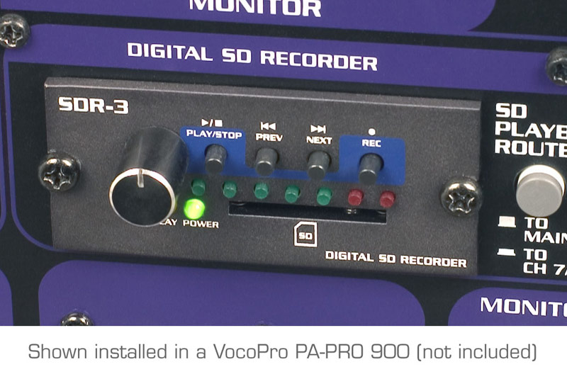 The SDR-3 digital SD recorder captures audio directly to SD card when installed in compatible VocoPro units.