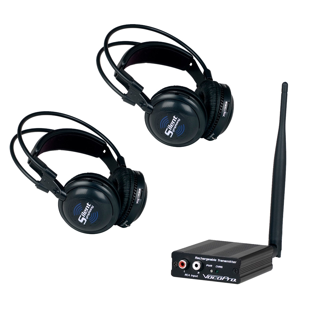 Elevate your events with the Silent Party package, featuring the VocoPro SilentSymphony-Headphone and SilentSymphony-Transmitter—the perfect duo for immersive, high-quality wireless audio. Whether it's a private party, a multi-channel DJ battle*, or a conference, this system delivers crystal-clear sound without the noise complaints!