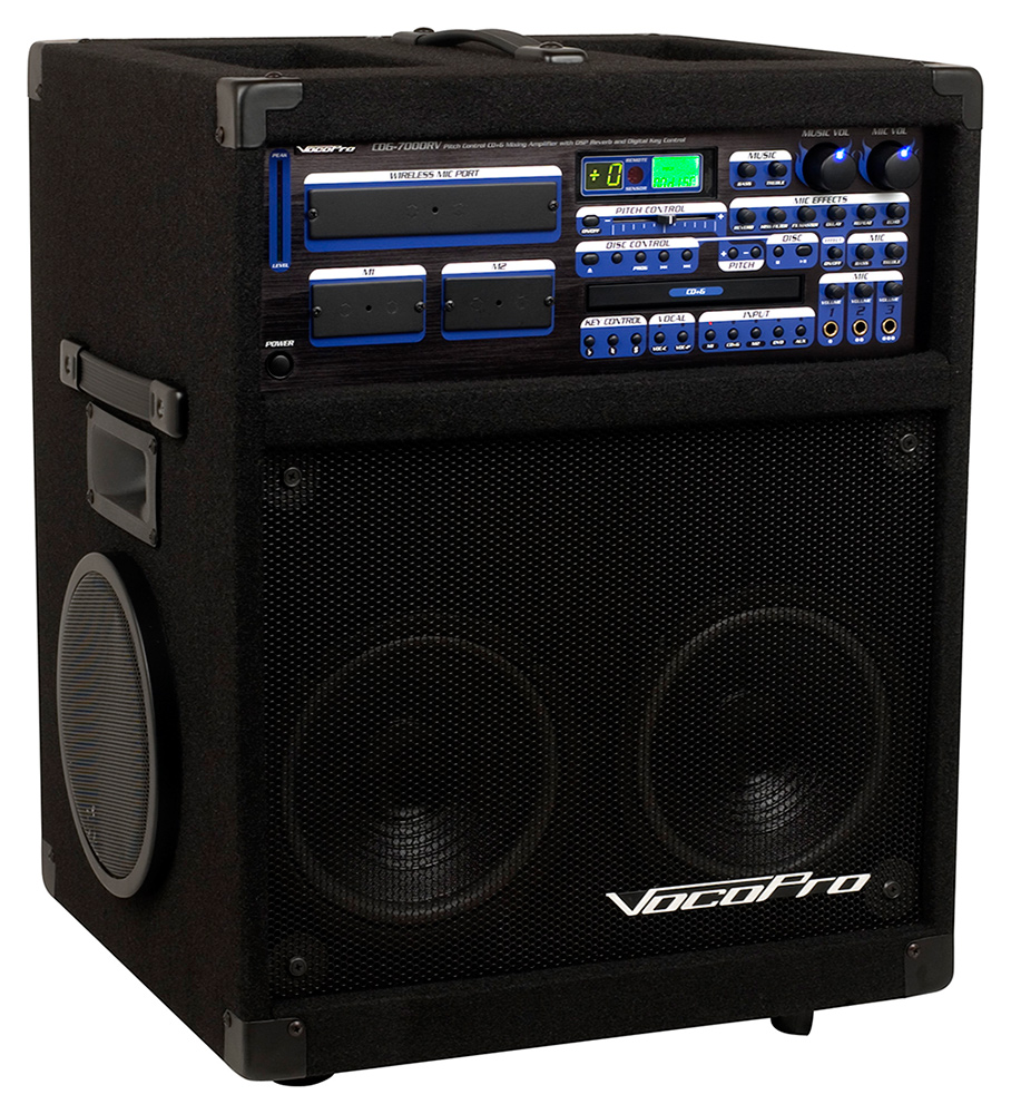 The best sounding all-in-one karaoke system is back with new features like Stereo Expansion slots and the ability to install a wireless microphone system, the Twister-7000 is an upgrade to the previous Twister-RV system. The Twister-7000 still has our famous thirteen step digital key controller, six microphone inputs, and professional vocal effects including echo, hiss filter and reverb. It also boasts Stereo Expansion slots to add even more features like digital audio recording* and digital file playback*. The Twister-7000 offers a shock resistant CD/CD+G player, a variable speed controller, and wireless receiver slot. An included remote control allows you to control the playback functions and music volume from a distance. Our mixing amplifier is built into a rugged rolling road case with 125W three-way stereo speakers installed on either side for full rich sound. The Twister-7000 is portable and easy to hook up to any television or monitor for a complete performance system.