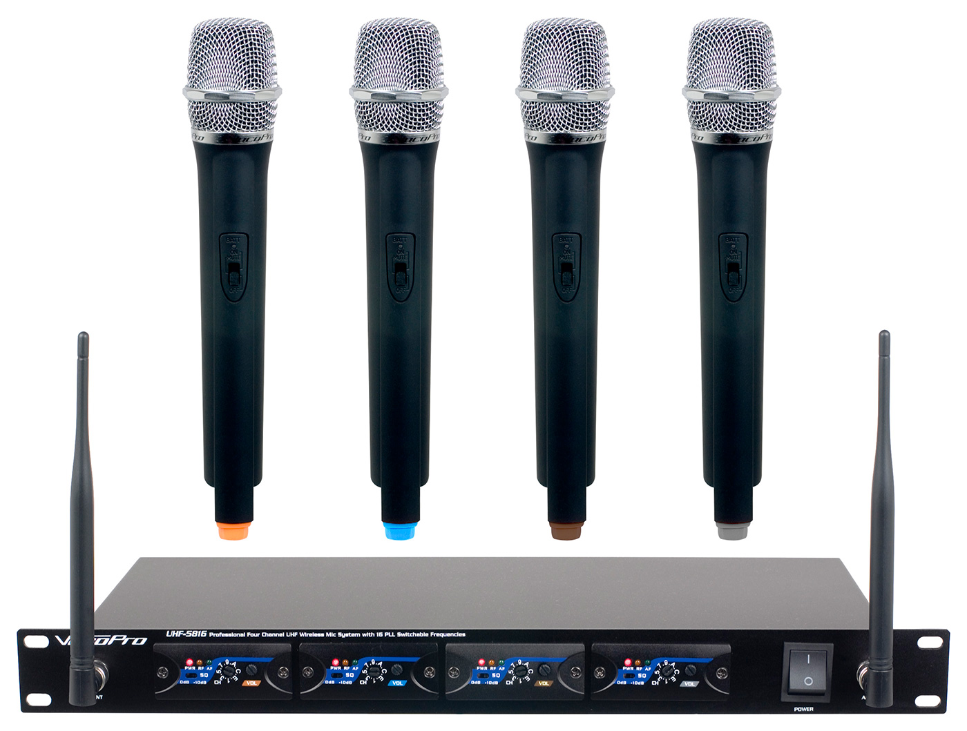 Professional Four Channel UHF Wireless Mic System with 16 PLL Switchable Frequencies
