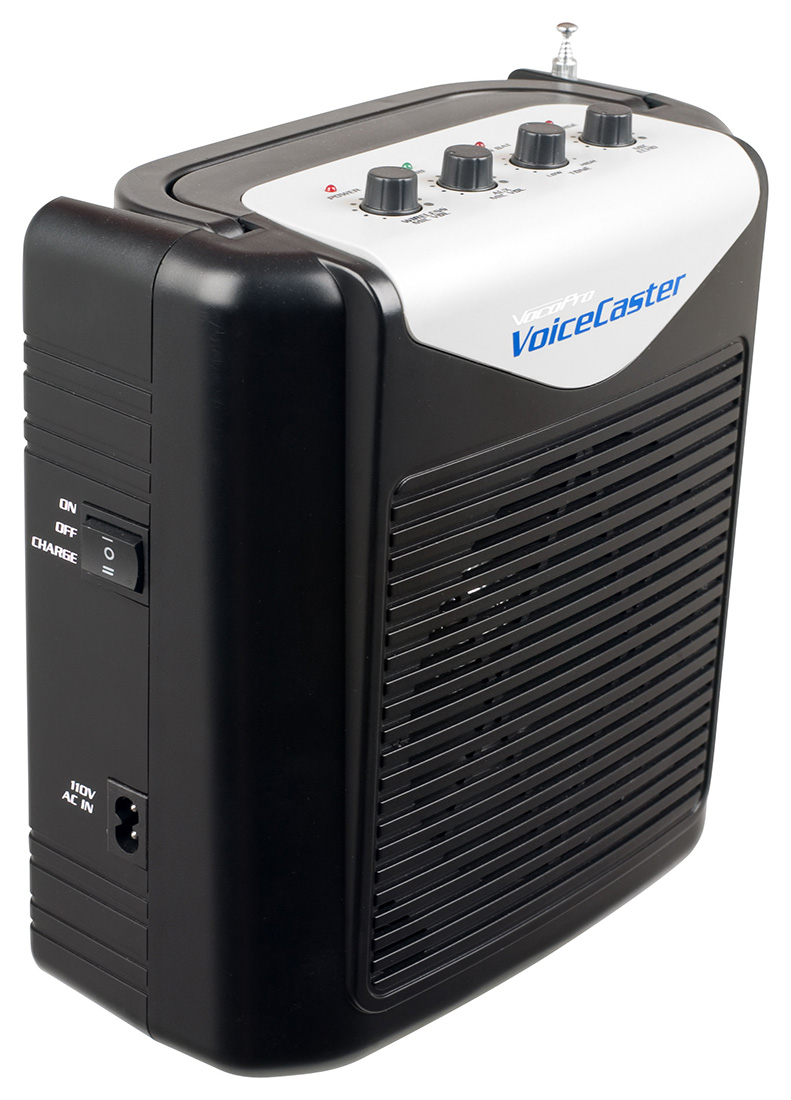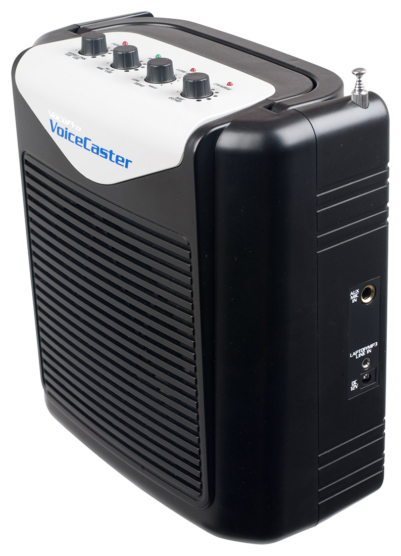 The VoiceCaster is a complete and easy to use rechargeable wireless PA system; great for all types of presentations. The handy line-in jack is ready to plug in a smartphone or laptop with a 1/8" to 1/8" stereo cable (not included). Take the wireless VoiceCaster from the classroom to the conference room; Easy to use: just plug in and speak.