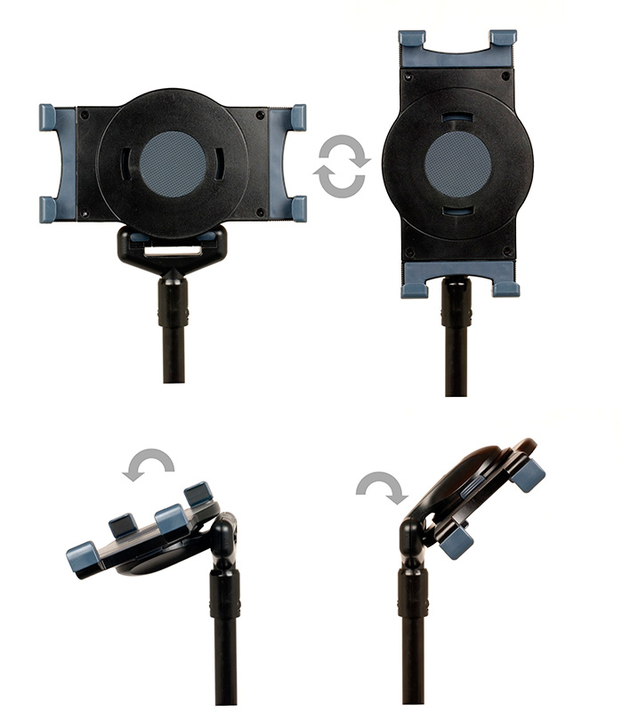 Tired of propping up a tablet while you perform? Achieve that professional look with our MS-UT tablet stand! Built to accommodate tablets up to 7.5" wide, the mount is fully adjustable to position a tablet in whichever orientation you wish: rotate your tablet between portrait and landscape with ease! The telescoping stand will ensure everyone, kids and adults, will have a clear view of the screen. Do away with the tablet balancing act and pick up an easy to use MS-UT today!