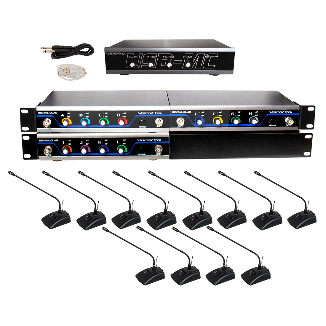 The USB-Conference packages come with handheld wireless microphones, and are available with 4, 8, 12, or 16 conference mics. Step up the game and showcase to the world with Vocopro's USB-MC and Digital-Quad packages.
