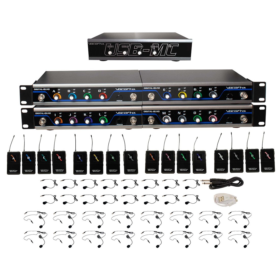The USB-Play packages come with wireless bodypack transmitters and both headset and lavaliere microphones, and are available with 4, 8, 12, or 16 bodypacks. Step up the game and showcase to the world with Vocopro’s USB-MC and Digital-Quad packages.