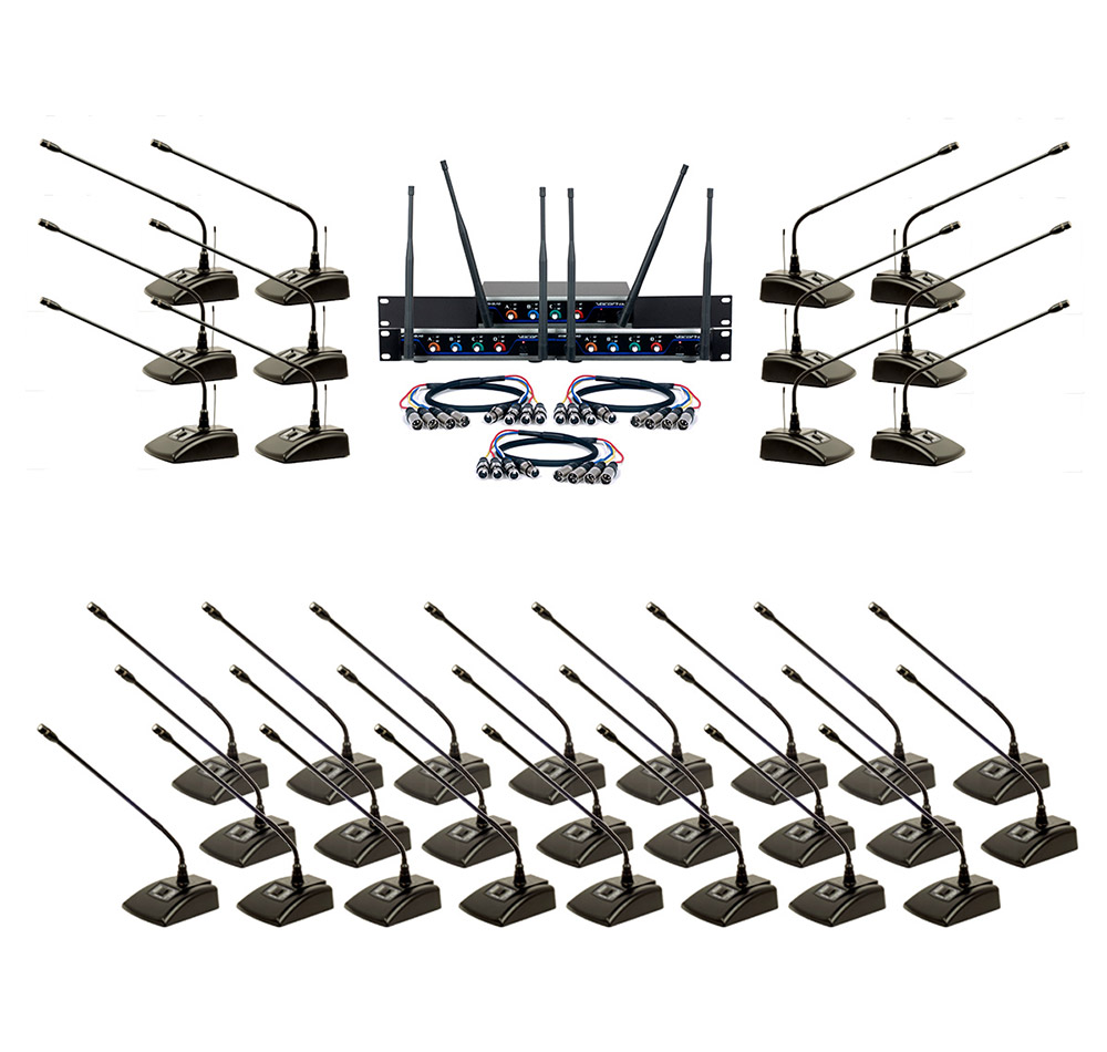 Expandable plug-and-play wireless/wired conference system with 36 microphones