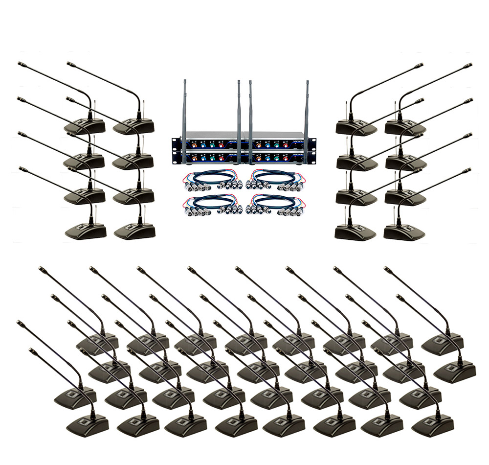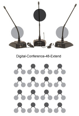 VocoPro's Digital Conference Microphone system is a plug-and-play system that can be set up in a breeze. Operating in the future proof 900 MHz band with 16 unique frequencies designed not to interfere with each other. The design has been revised in the new V-2 Digital Conference Microphone base, which is capable of plugging in two more wired conference microphones. This will expand the system to support up to 48 Conference Microphones. This innovative way of mixing wireless and wired conference microphones give users the best from both worlds. Expanding the capacity without occupying more wireless frequencies, while still enjoying the benefit of running no wires to the receiver.
