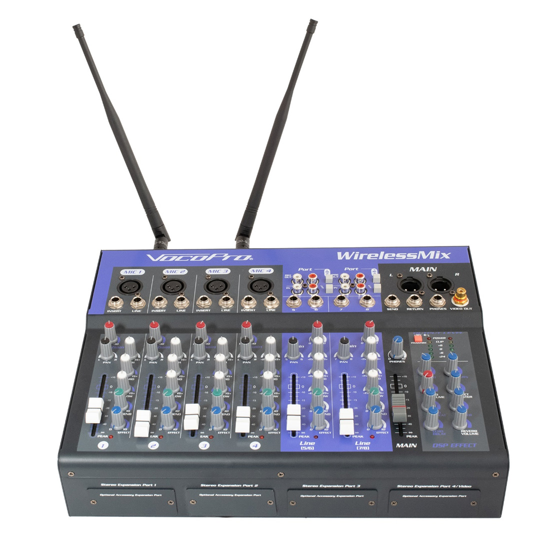 Vocopro's BAND-GO offering contains the WirelessMix eight-channel mixer along with two wireless vocal microphones. The system also includes two 1500-watt Thunder-1500 powered speakers with Pro Derby Lights built right into the speakers, saving floor space as well as setup time.