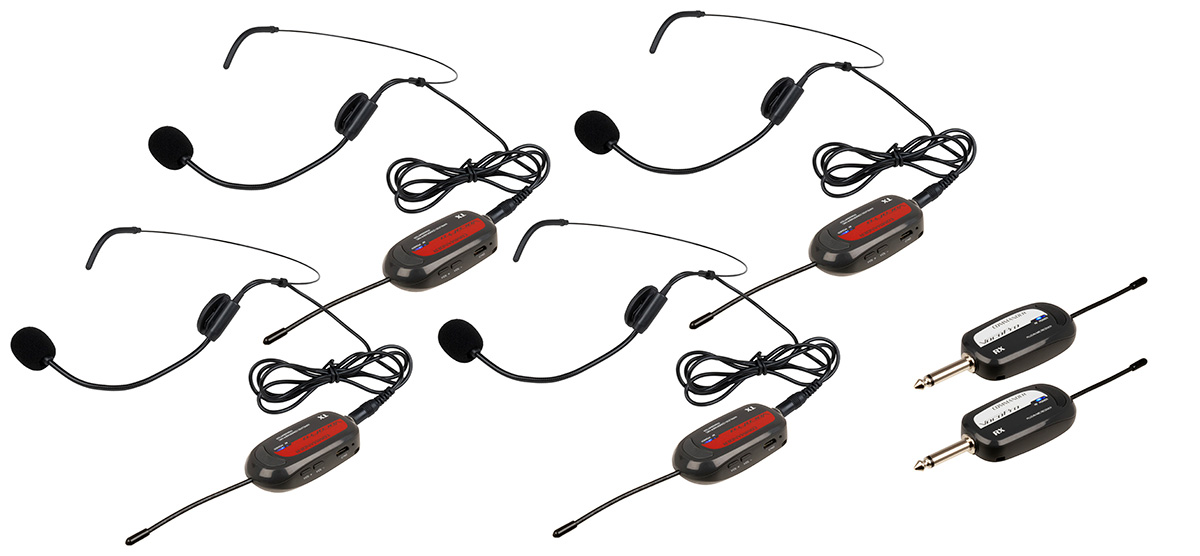 4 UHF Wireless Headset Mics with Receivers