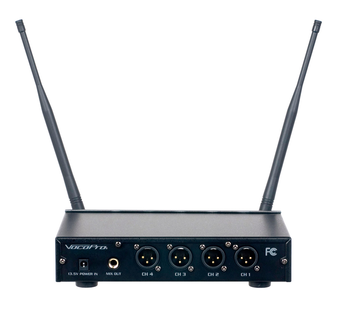 The Digital-Quad-B is VocoPro's latest edition in quality and reliable microphone sets. It's a 4 channel wireless package that's configured with clip-on bodypacks to use headset and lapel microphones, whichever your situation may require. Operating in the 900Mhz band, the Digital-Quad-B is unaffected by the TV Broadcast interference that plagues other microphones on the market! And its professional quality 24-bit resolution audio will be heard clearly across its entire 200ft range. The Digital-Quad-B is show ready with its balanced XLR outputs on each channel, allowing for minute volume control; or use the 1/4" mixed output for an easy setup. With 4 frequency sets available, accommodating even the largest groups will be a breeze! Simplify your microphone set up with the latest microphone package, the Digital-Quad-B by VocoPro!
