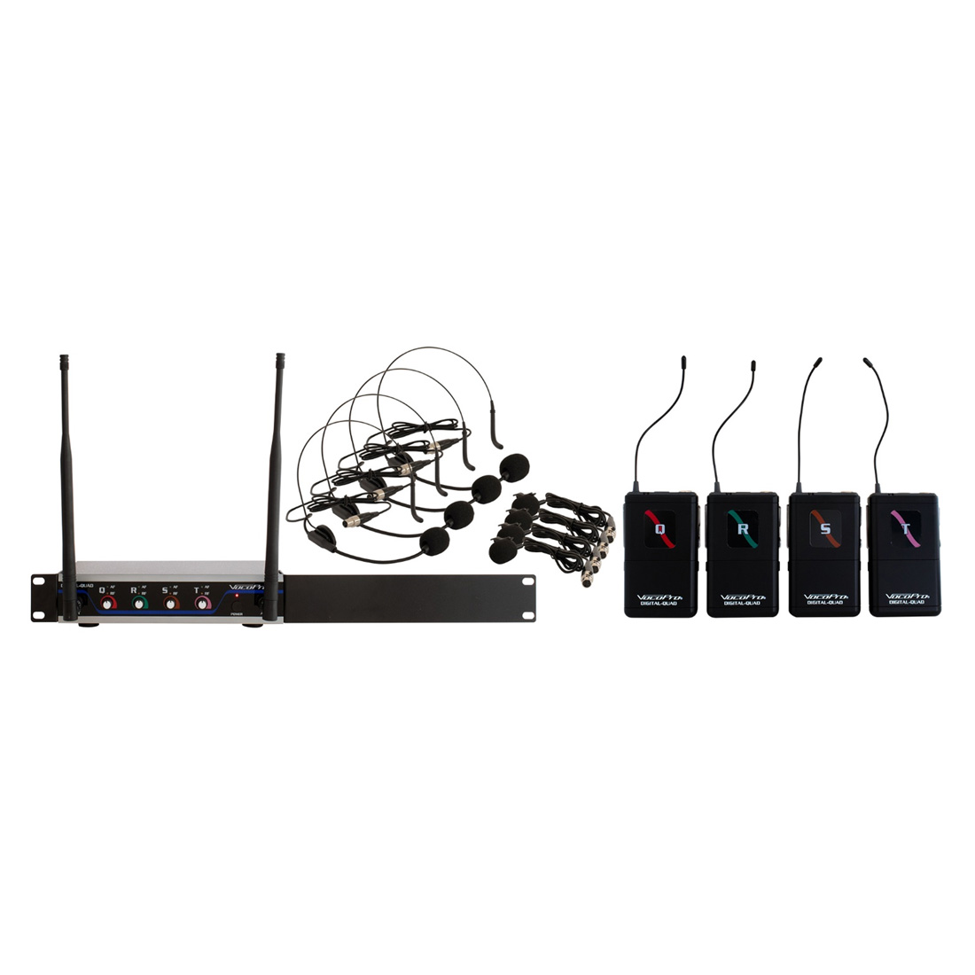Included: Four Digital Wireless Bodypack Transmitters Four Headset Microphones Four Lavalier Microphones Digital-Quad Receiver
