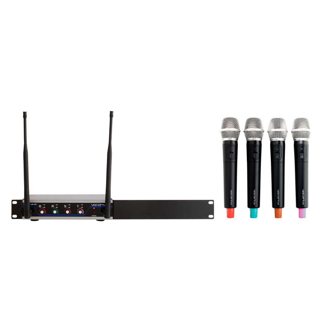 Included: Four Digital Wireless Handheld Microphones Digital-Quad Receiver