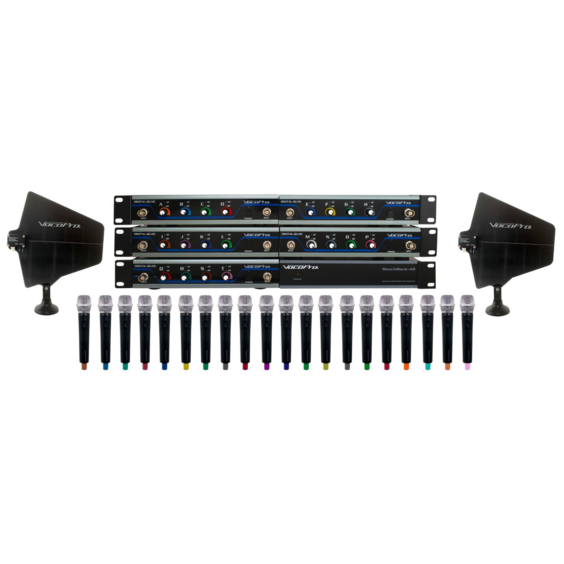 20-User Long Range Digital Wireless Microphone Package with Handheld Transmitters and Active Antenna Distribution System