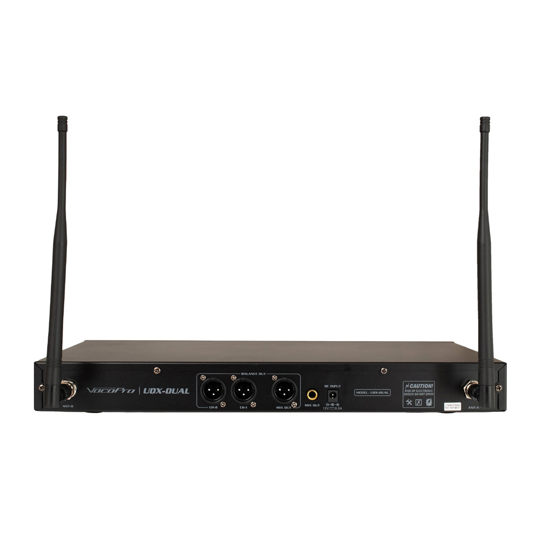 Includes: UDX-DUAL two-channel receiver 2x UDX-HT handheld microphone 2x XLR-6FT audio cable