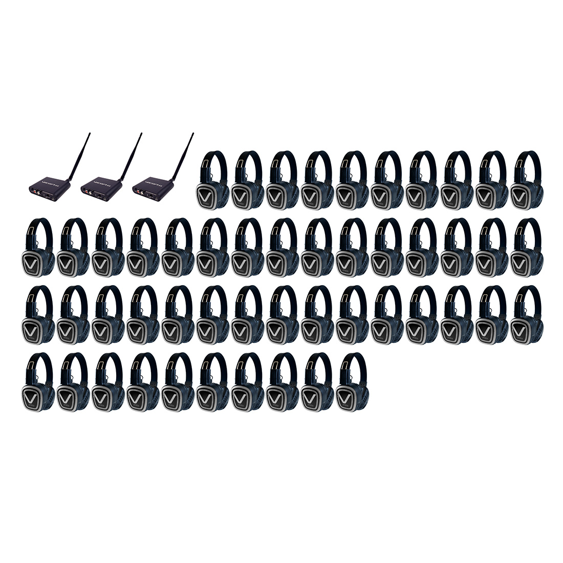 Professional Long-Range Silent Disco/ Event package with Three Transmitters and Fifty Headphone Receivers